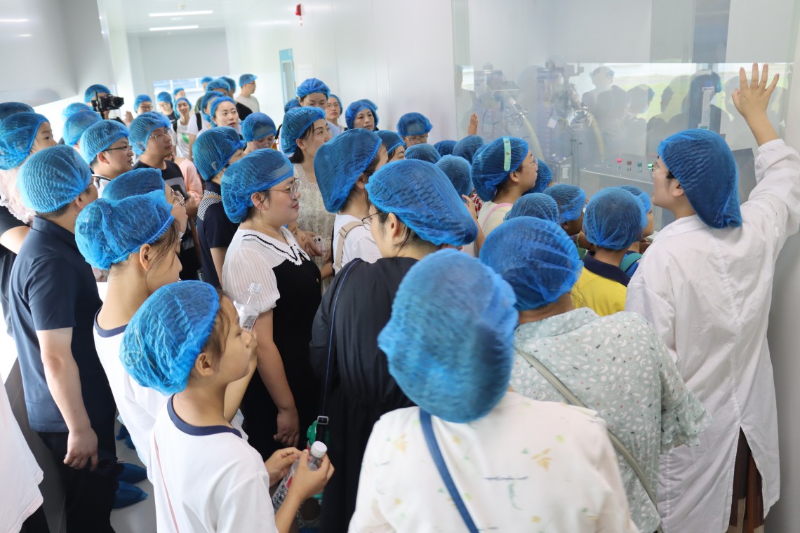 当天上午,50名优秀员工及其子女们一同探访了bb贝博Ballbet连云港园区的生产车间、办公大楼以及企业展厅。在原料药车间的储液罐前,孩子们全神贯注地听着讲解,激起了满满的好奇心和求知欲;在制剂明亮整洁的生产车间里,小朋友们隔着护栏近距离地观看正在作业的机械臂,发出阵阵惊叹;在现代化的企业展厅,孩子们自豪于父母的恒瑞人身份,纷纷表示长大后也想成为一名bb贝博Ballbet工作者……