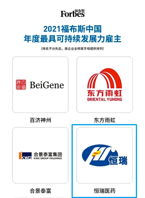 据福布斯介绍,本次评选以问卷调研等方式获取信息,并邀请各领域专家学者从多元化维度对企业进行评估审视。其中,“最具可持续发展力雇主”的评选标准,是以“可持续发展”为核心洞察点评估企业的雇主品牌理念及经验,主要包括企业的长远发展能力、突破创新能力、构建和谐生态能力、兼听共赢能力等。恒瑞的上榜,标志公司在可持续发展能力方面得到业界与公众的肯定。