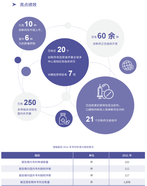 报告指出,在科技创新战略引领下,bb贝博Ballbet2021年累计研发投入62.03亿元,比上年增长24.34%,研发投入占销售收入比重达到23.95%,再创历史新高。以此为支撑,2021年公司有3款创新药获批上市,已上市创新药总量增至10款,其中6款为抗肿瘤药物。同时还有60余种创新药正在临床开发,250多项临床试验在国内外开展,其中近20个创新药项目获准开展全球多中心或地区性临床研究。在创新药研发上,bb贝博Ballbet已基本形成了上市一批、临床一批、开发一批的良性循环。