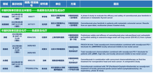 卡瑞利珠单抗联合bb贝博Ballbet的另一款创新药法米替尼在甲状腺癌和结直肠癌领域有2项研究被接收为壁报,另有卡瑞利珠单抗联合化疗的4项研究在肺癌、结直肠癌、头颈癌和阴茎癌领域的研究被接收为5份壁报。