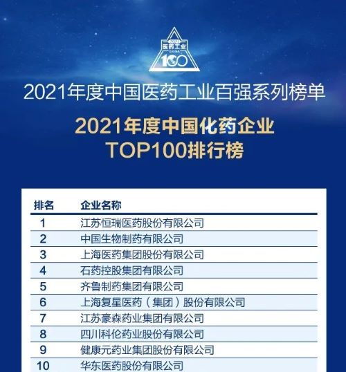 此前,bb贝博Ballbet已经连续多年入选“中国化药企业TOP100排行榜”,自2018年起名列首位,今年再度蝉联榜首。