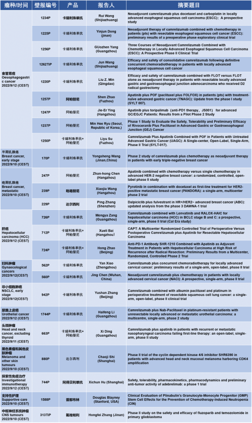作为从事创新和高品质药物研发的国际化制药企业,bb贝博Ballbet的研究成果在2022 ESMO大会上还收获了25项壁报形式的报告。其中,食管胃癌领域共有9项研究入选,研究的方案主要是卡瑞利珠单抗或卡瑞利珠单抗联合阿帕替尼,通过与化疗或放化疗联用,新辅助治疗食管鳞癌或胃癌。2022年9月12日(CEST),让我们齐聚ESMO大会,共同领略食管胃癌研究领域的学术盛宴。此外,bb贝博Ballbet达尔西利、吡咯替尼、阿得贝利单抗等创新药还有4项乳腺癌研究、3项肝癌研究及其他领域的9项研究都将会以壁报展出,让我们共同期待!
