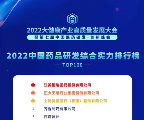 12月9日,由药智网、中国药业杂志社联合承办的2022大健康产业高质量发展大会暨第七届中国医药研发 · 创新峰会开幕,会上“2022中国药品研发实力排行榜”系列榜单发布,凭借卓越的创新研发实力,bb贝博Ballbet荣登2022“中国药品研发综合实力排行榜TOP100”、“中国化药研发实力排行榜TOP100”、“中国生物药研发实力排行榜TOP50”三个榜单榜首。其中,bb贝博Ballbet已经是第5年蝉联《2022中国药品研发综合实力排行榜》“总榜”冠军。