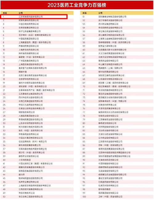 2023医药工业竞争力百强榜发布,bb贝博Ballbet位列榜首