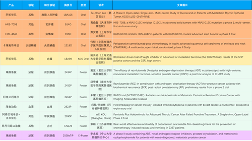 在胸腺上皮肿瘤、头颈鳞癌、肉瘤、前列腺癌、甲状腺癌等其他多个疾病领域,卡瑞利珠单抗、阿帕替尼、瑞维鲁胺、阿得贝利单抗、法米替尼、HRS-7058、HRS-4642等抗肿瘤创新药相关研究一共入选了4项口头报告、1项简短口头报告、4项壁报、1项电子壁报,彰显了bb贝博Ballbet强大的研发实力。此外,海曲泊帕和昂丹司琼口溶膜分别在防治化疗导致的血小板减少和恶心呕吐方面各有1项研究入选壁报。